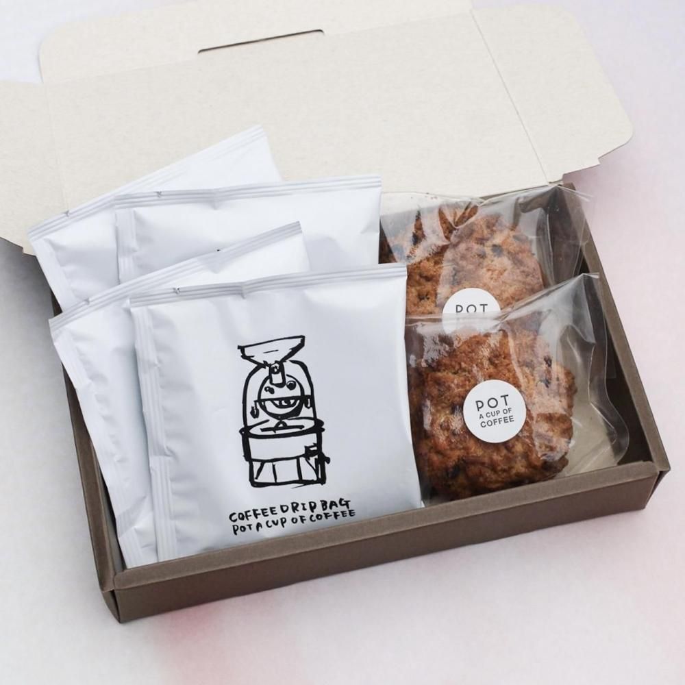 ご自宅や職場で、お湯を注ぐだけでPOTのコーヒーと焼き菓子のペアリングをお楽しみいただけます。
