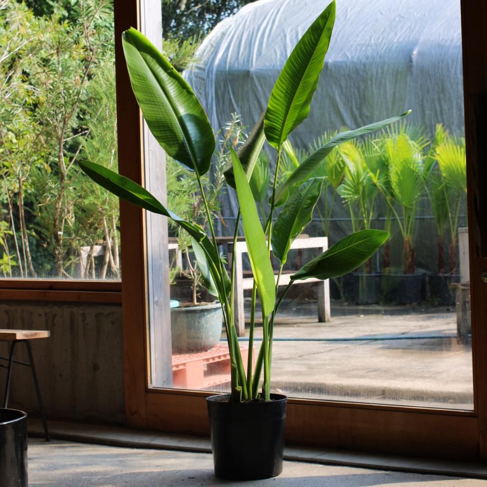 スッと立ち上がるスタイリッシュな茎と、その先で大きく展開するグリーンの葉が特徴的です。室内での環境下では限界がありますが、自生地では20mにもなります。1本でボリュームが十分あるのでリビングなど広い空間に飾ってお楽しみください。育てやすさのある植物なのでギフトにもおすすめです。