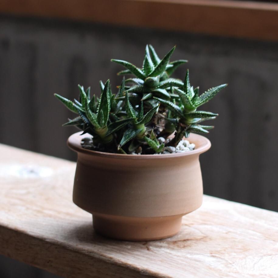 薩摩焼が盛んな鹿児島県日置市美山を拠点に作陶している城雅典さん。Araheamと共同で形やサイズなどのアイデアを出し合い、それを城さんがろくろを使い一つ一つ丁寧に、形にしていくプランツポットシリーズ。土器や古い花器からインスピレーションを受けた形と植物に馴染みやすい赤土を使用した鉢は、植物と馴染みやすい仕上がりに。城さんのゆったりと優しい人柄から作り出される、おおらかな雰囲気と確かな技術が融合した植木鉢。植物とのコンビネーションをお楽しみください。