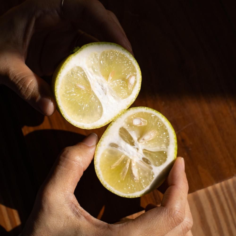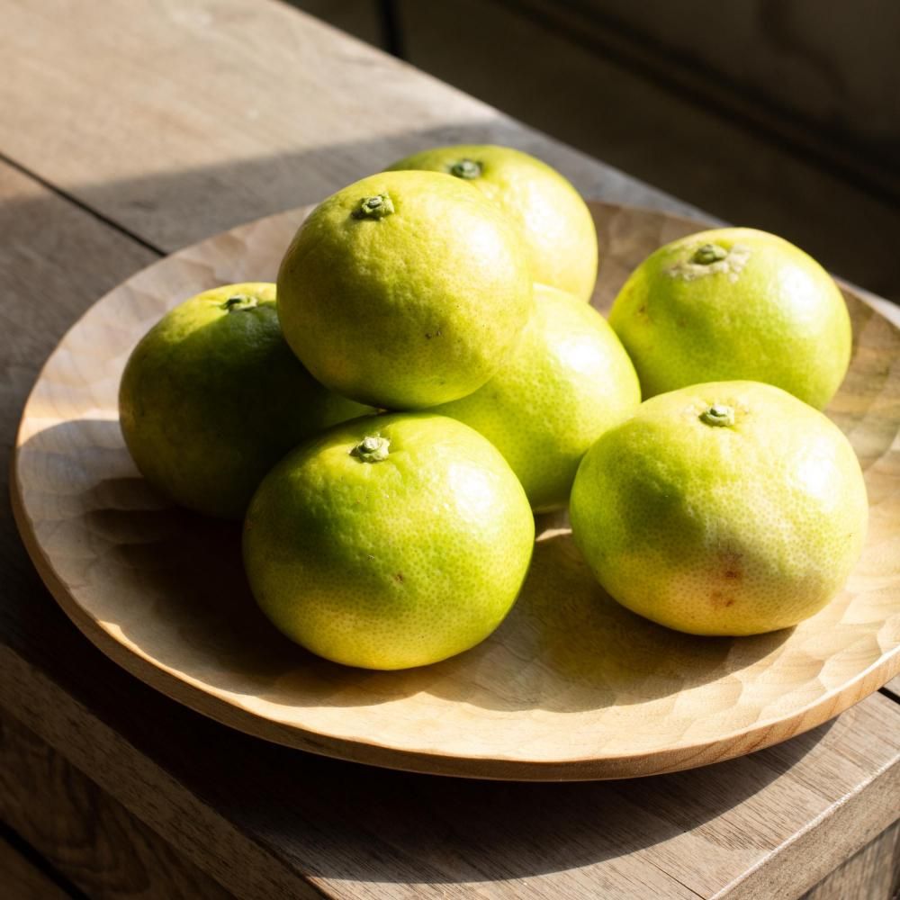 私たちの拠点である鹿屋から更に南へ1時間程車で南下した本土最南端の佐多岬の南大隅町。その佐多辺塚地域で自生している辺塚橙が入荷しました。昔から地元で愛されてきた柑橘、レモンやカボスと同じようにお料理や飲み物に合わせて使っていただけます。個人的に、お刺身や肉料理、最近はお蕎麦にも絞ってみました。焼酎に絞るのもおすすめです。皮が薄くてたっぷりと絞れる果汁は、マイルドでこの時期は冷蔵庫に常備しています。少しずつ熟して色も黄色になっていきますが、その味の変化もお楽しみください。私たちの自慢のローカルフードぜひお試しください。この時期だけの期間限定の販売です。